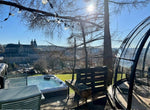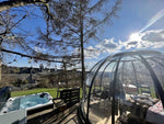 La Sphair est semi perchée à l'orée du bois, cependant vous êtes à 10 min du centre-ville mais aussi à 10 min d'un resto super sympa accessible à pied par un sentier dans le fond du jardin, effet waouh et inimitée garantie !