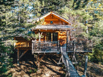 Une cabanne/chalet sublime avec énormément d'idée de décoration incroyable, un endroit des plus calmes en hauteur au cœur même de la forêt sans ville à côté, avec vu sur le coucher de soleil et les montagnes forestière depuis la terrasse avec jaccuzzi chauffé de luxe !
