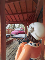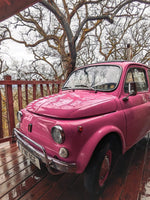 Ambiance et Esprit « VINTAGE » avec Oh surprise ! un clin d’œil insolite couleur barbe à papa perché à 8 mètres de hauteur histoire de ne pas le confondre avec les fraises des bois ….