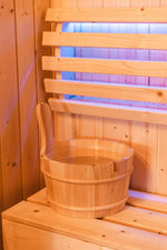 Pour prolonger cette expérience bien-être, le chalet dispose aussi d’un sauna privatif. Sa chaleur enveloppante aide à relâcher les tensions et procure une sensation immédiate de relaxation.