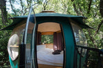 Plongez dans un véritable conte de fée : nichée au cœur des arbres, perchée sur pilotis à 5m de hauteur et accessible par un escalier en colimaçon, la Campalune vous ouvre ses bras et ses baies vitrées s'entrouvrent latéralement tels des pétales ! Son design est inspiré du monde floral. Admirez la vue 360° sur la nature, et laissez vous porter par les douces mélodies nocturnes.