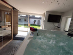- un espace détente avec un spa à bulles privatif, un sauna infrarouge privatif, une douche massant, une smart TV