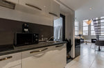Il est composé : . D'une chambre double avec un lit (matelas Mybed de Sofitel) de 160 cm. L'ambiance est luxueuse et glamour. Télévision & Wifi gratuit. . D'une cuisine équipée chic et moderne (frigidaire et congélateur, four, plaque à induction, hotte, cafetière + capsules, vaisselle, micro-onde). . D'une salle de bain chic avec douche tropicale et son ciel de pluie multifonctions, un miroir lumineux avec miroir incorporé, un sèche-serviettes, un sèche-cheveux. Le linge de toilette est fourni, vous n'avez pas besoin d'amener le vôtre.