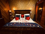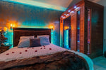 La décoration typique "Chalet de luxe" a été réalisée par un architecte d'intérieur pour passer un séjour inoubliable en amoureux dans un endroit hors du temps pour vous retrouver et vous détendre. Au pied du lit, vous trouverez une cheminée de luxe pour une ambiance cosy en amoureux.