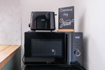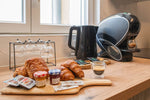 Cuisine complète avec micro-ondes, réfrigérateur, cafetière