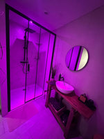 La chambre, véritable écrin de douceur, vous accueille avec un lit king size, offrant un confort optimal pour des nuits profondes et réparatrices. Les jeux de lumières d’ambiance renforcent l’atmosphère romantique et créent un cadre parfait pour des moments à deux, en toute sérénité.
