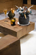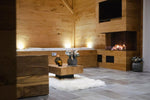 La suite " L'authentique " vous promet une expérience unique de bien-être. Le charme du bois vous offre une atmosphère douce et chaleureuse. Profitez de sa balnéo jacuzzi, de son sauna finlandais et vivez une soirée romantique au coin du feu.