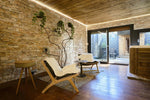 Parquet massif & mur en pierre naturelle, pour une sensation de douceur et d’authenticité