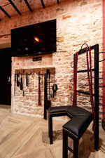 Le Donjon est équipé d’un mobilier BDSM haut de gamme, pensé pour la sécurité, le plaisir et l’élégance :