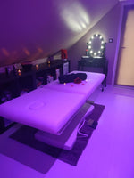En descendant, laissez-vous séduire par la piste de pole dance avec son grand miroir, puis détendez-vous dans notre SPA privé, doté de multiples jets, 5 places assises et 2 allongées. Parfait pour se relaxer en dégustant une coupe de champagne. Une douche XXL et une salle de bain luxueuse vous y attendent. Une table de massage est également à votre disposition.