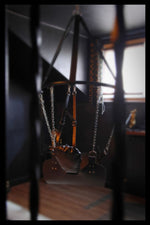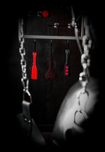Chambre audacieuse équipée d’une chaise suspendue, d’une croix de Saint-André et d’accessoires, idéale pour pimenter votre séjour