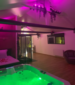 Plongez dans l’univers cosy de notre loveroom avec jacuzzi privatif, où l’eau chaude et les lumières tamisées créent une ambiance propice à la détente et à la sensualité.