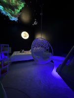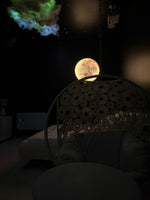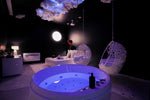 Un lit confortable vous accueille sous un ciel étoilé, sublimé par une lune dont vous pouvez ajuster l’intensité lumineuse.