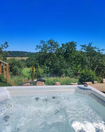 Salon de jardin et spa extérieur pour profiter du soleil à toute heure