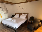 LoveRoom « L’Évasion » Offrez-vous une véritable parenthèse hors du temps dans L’Évasion, la LoveRoom intimiste et chaleureuse de L’Orée du Peney. Pensée spécialement pour les couples, cette suite vous invite à ralentir, à vous retrouver et à profiter pleinement d’un moment privilégié à deux, dans un environnement calme et naturel. Dès votre arrivée, vous serez séduits par l’atmosphère douce et enveloppante du lieu, mêlant bois, matières naturelles et décoration...