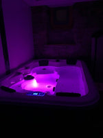 Vous pourrez vous prélasser et vous détendre avec notre jacuzzi 4 places (2 assises + 2 allongée). Il vous prodiguera un véritable massage intégral sur tout le corps.