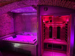En cave voûtée un espace bien-être privatif vous offrira le plaisir d’une balnéo 2 personnes allongées, d’une douche tropicale, d’un lavabo totem et d’un sauna infrarouge pour partager des moments de détente intimiste.