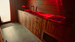 Ambiance lumineuse modulable, avec des tons rouges et des rideaux occultants, pour personnaliser votre cadre selon vos envies.