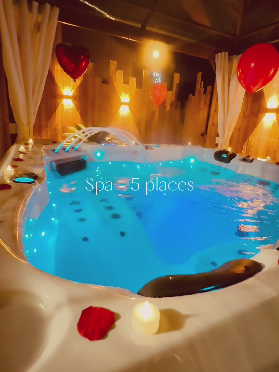 Le jacuzzi est propre, parfaitement fonctionnel et idéalement placé pour profiter d’un moment de détente à deux. Les rideaux nous plonge dans un cocon et nous isole COMPLETEMENT du froid et du vent !