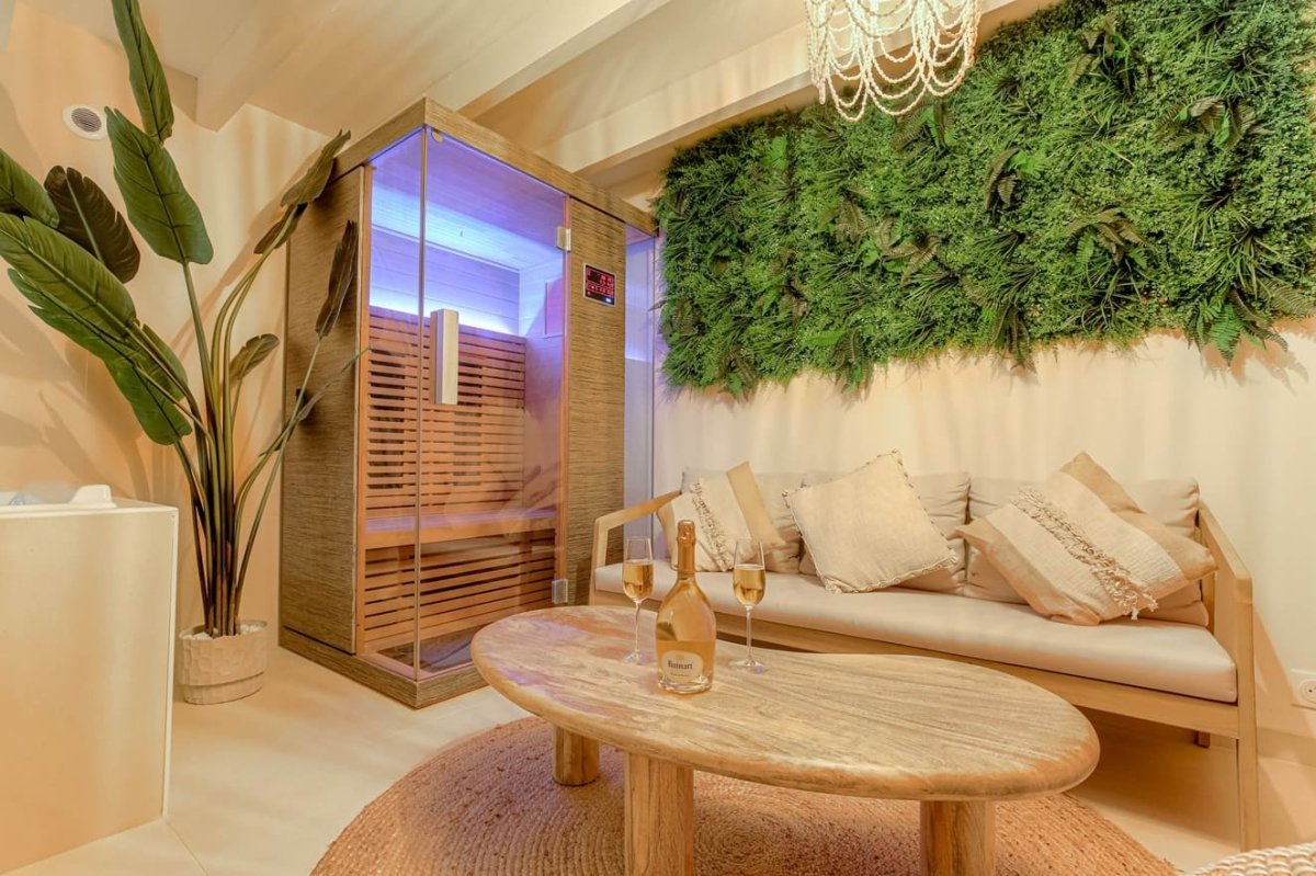L’espace est complété par un sauna privatif, accessible librement, parfait pour éliminer les tensions et prolonger les bienfaits du spa.